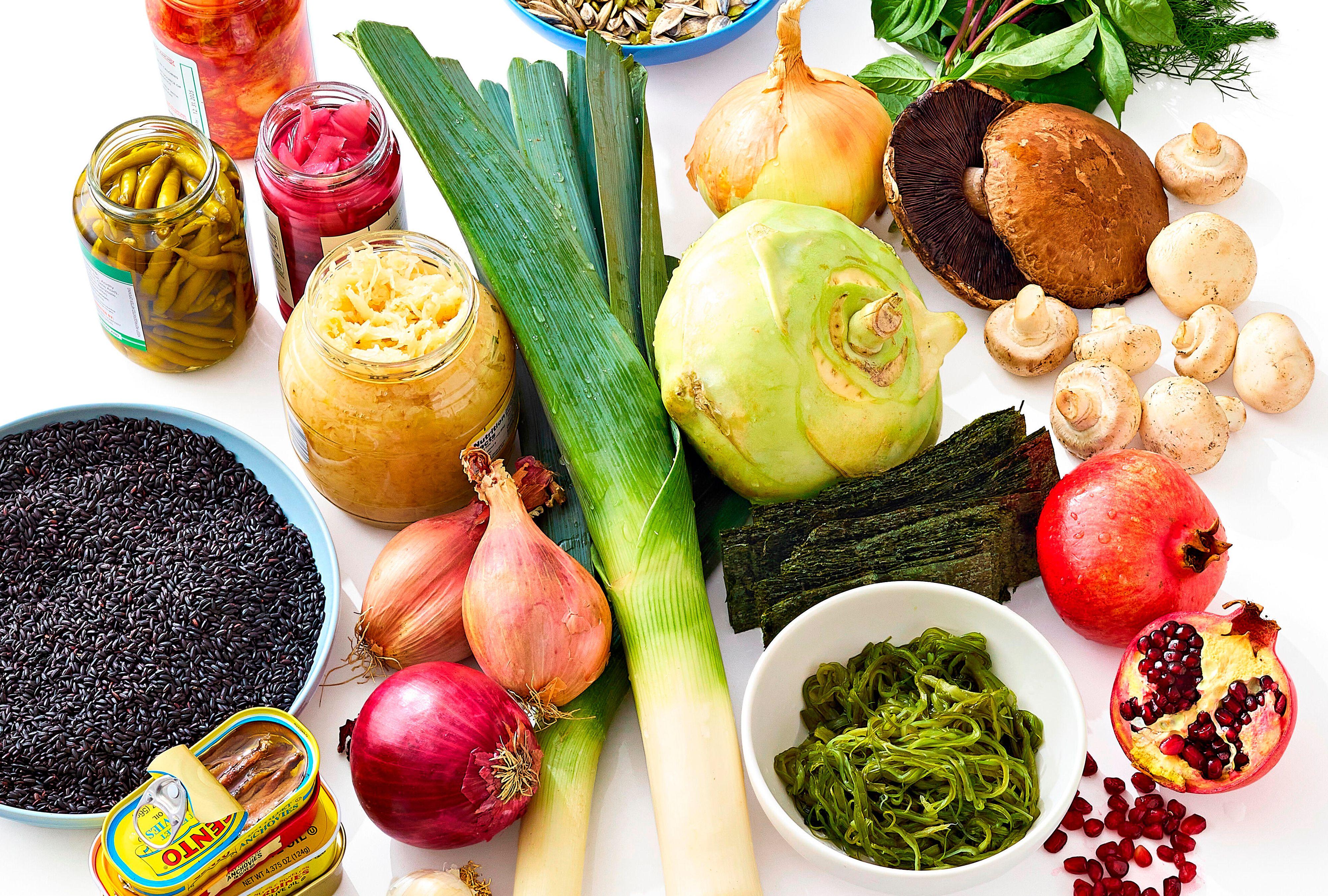 The plant family that includes onions, shallots, chives, leeks, scallions and garlic (which you can grow inside, too!) is called alliums, and they're a source of prebiotic fiber (which feeds the good gut bacteria).