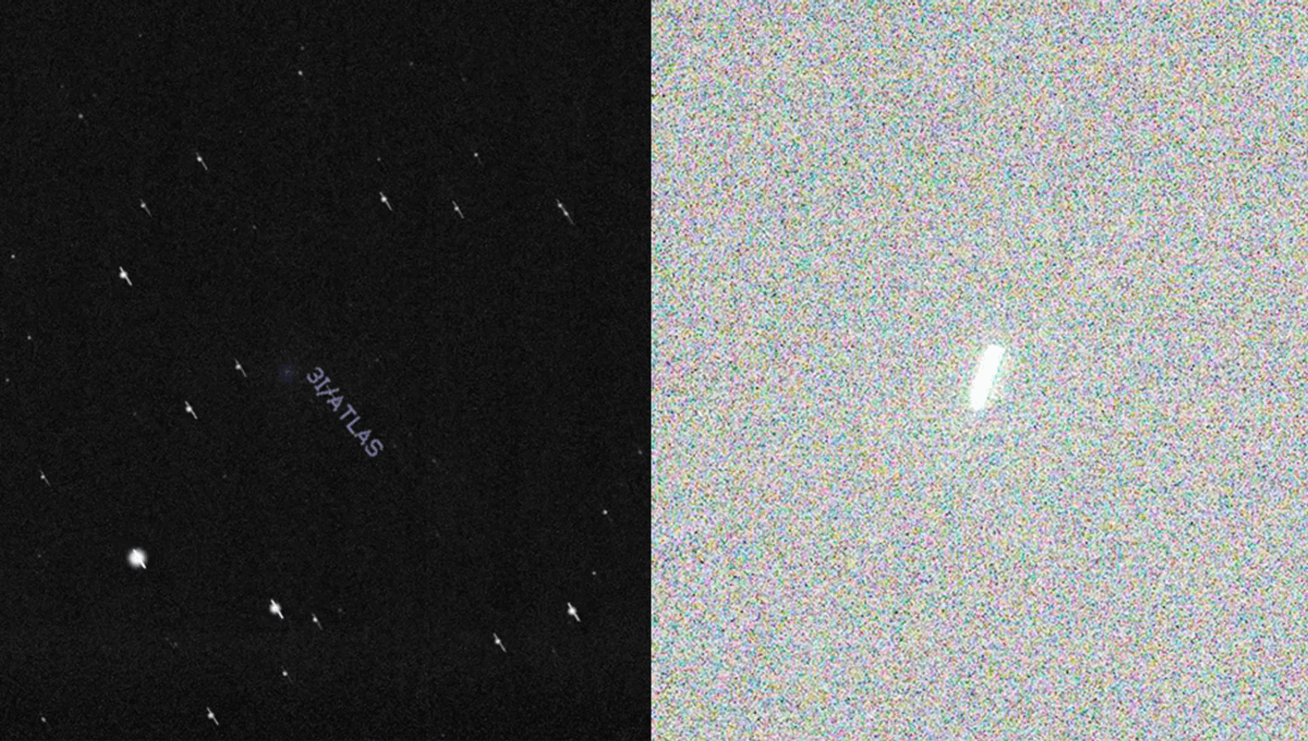 The rest of this article is behind a paywall. Please sign in or subscribe to access the full content. 3I/ATLAS was discovered on July 1, this year, moving through the Solar System at nearly twice the velocity of previous interstellar visitors ‘Oumuamua and Comet Borisov. The object was confirmed to be an interstellar comet and is suspected to be far larger than the previous two, with an estimated nucleus (the rocky part of the comet, excluding its coma) of around 5.6 kilometers (3.5 miles), and a possible "anomalous" mass of over 33 billion tons. The astronomical community continued to track the object, known to be a comet due to outgassing as it gets closer to the Sun on its way through the Solar System. Now, it has vanished from Earth's view and won't be back in it until later this year. But Earth is not the only place in the Solar System where humanity has cameras and scientific instruments. On October 3, Comet 3I/ATLAS had its closest approach to Mars, passing by it at a distance of around 29 million kilometers (18 million miles). NASA and the European Space Agency (ESA) both planned to observe the sky during this timeframe using space robots such as Mars Express and the ExoMars Trace Gas Orbiter, and we'll find out soon enough if they observed it from Mars' orbit. And possibly, as the case may be, by the Perseverance rover on the Red Planet's surface. Here's where it gets a little murky. As the US space agency explains on its website, "NASA Operating Status: NASA is currently CLOSED due to a lapse in Government funding". While NASA is unable to post information on any data that may have been captured by its robots, Perseverance continues to send its raw images, which are available to the public to view. Looking through those images, some believe they have identified the interstellar object. While one has been picked up by the press and the Internet alike, this one is unlikely to be an image of 3I/ATLAS. However, another that has gone unnoticed by most media may be worthy of some further attention. Let's begin with the stupider claims. NASA runs an "image of the week" feature on its website, highlighting the images that the public has voted to be the best that week. Unsurprisingly, this week it was an image of what people think looks suspiciously like 3I/ATLAS. NASA's image of the week shows an object some claim is 3I/ATLAS. Image credit: NASA/JPL-Caltech "NASA's Mars Perseverance rover acquired this image using its onboard Right Navigation Camera (Navcam). The camera is located high on the rover's mast and aids in driving," NASA explains of the image, adding "this image was acquired on Oct. 4, 2025 (Sol 1643) at the local mean solar time of 21:33:39." While more conspiracy-minded folk have declared "it's not a comet... it's perfectly cylindrical," they are likely at least 50 percent correct, if not 100 percent. First off, the cylindrical shape is an artifact of the camera's shutter speed and the fact that the object was moving overhead. If you instead track the object, it is the other objects around it that begin to look cylindrical, as seen in this Hubble image below. 3I/ATLAS seen by Hubble. Image credit: NASA, ESA, D. Jewitt (UCLA), J. DePasquale (STScI) According to IFLScience's own resident astronomy expert, Dr Alfredo Carpineti, the object is more likely to be one of the Mars orbiters. It is difficult to pin these things down based on a smudge. So IFLScience went through the raw Perseverance data following a Reddit post claiming to have the first images. While there is definitely something moving across the several minutes of this time-lapse, the object is too fast to be the comet. This might have been one of the orbiters that fly around Mars. Perseverance's view of the sky, October 4, 2025, most likely not seeing 3I/ATLAS. Time-lapse created by IFLScience from NASA data Image credit: NASA, modified by IFLScience But there is a better candidate, which appears to have been first spotted by Simeon Schmauß. "I think Perseverance may have spotted interstellar comet 3I/ATLAS last night from Mars!" Schmauß wrote on Bluesky. "After stacking 20 images from Mastcam-Z, I found a faint smudge of light in the constellation Corona Borealis close to the location where the comet was expected." ⓘ IFLScience is not responsible for content shared from external sites. While the object appears in the right area of the sky, and looks more like what you might expect if NASA trained its cameras on an object in an attempt to take a long exposure of this distant source, we're afraid that it is a waiting game to find out exactly what we're looking at. In short, we may have seen an Interstellar object from the surface of another world for the first time, but we will need to wait further for confirmation. Fingers crossed the shutdown does not last much longer.