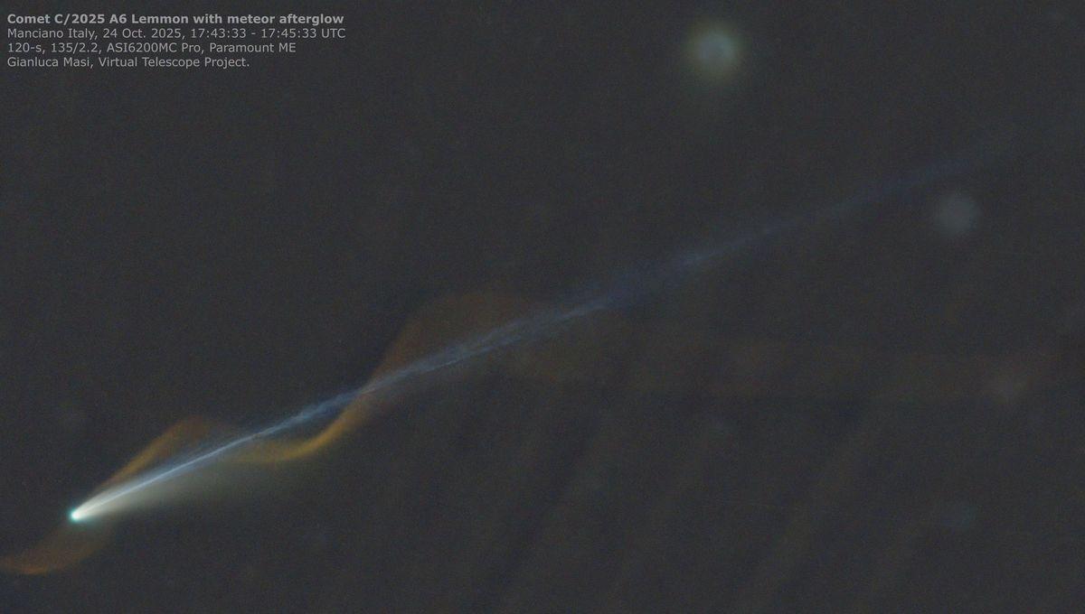Comet C/2025 A6 Lemmon behind the afterglow of a meteor trail!
