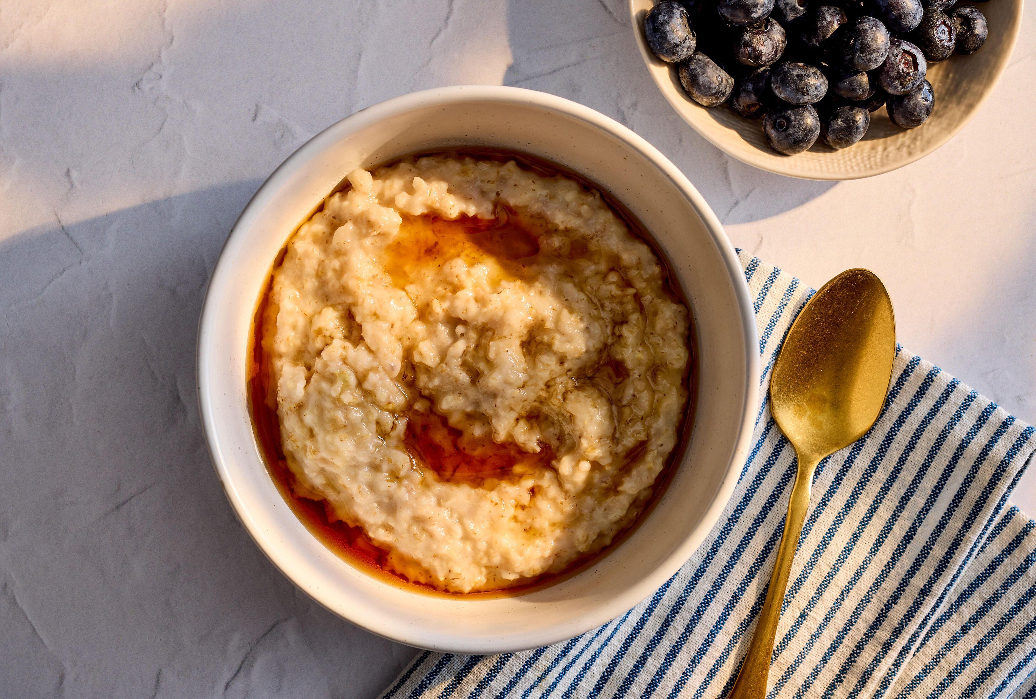 - Play around with the liquid-to-oat ratio. I’m more familiar with a 2:1 ratio of water to oats; Ina opts for 3:1. The result is still creamy and not runny, however, you can add a little more or less liquid as desired.