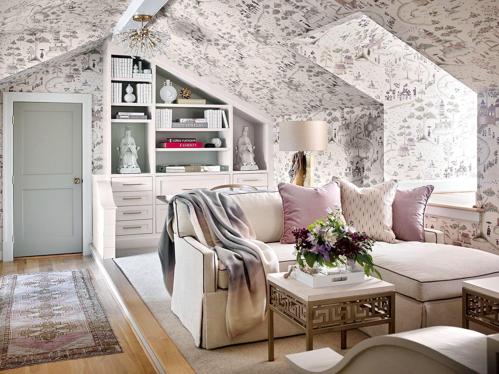 There are many ways to approach this layering technique. ’80s and ’90s kids will remember the look of two wallpapers divided by a chair rail; to replicate this look in a more modern way, choose a large print for the bottom and a small one for the top. Similarly, you could install a large print on the walls and a petite one on the ceiling, or pair an organic print with a geometric one.