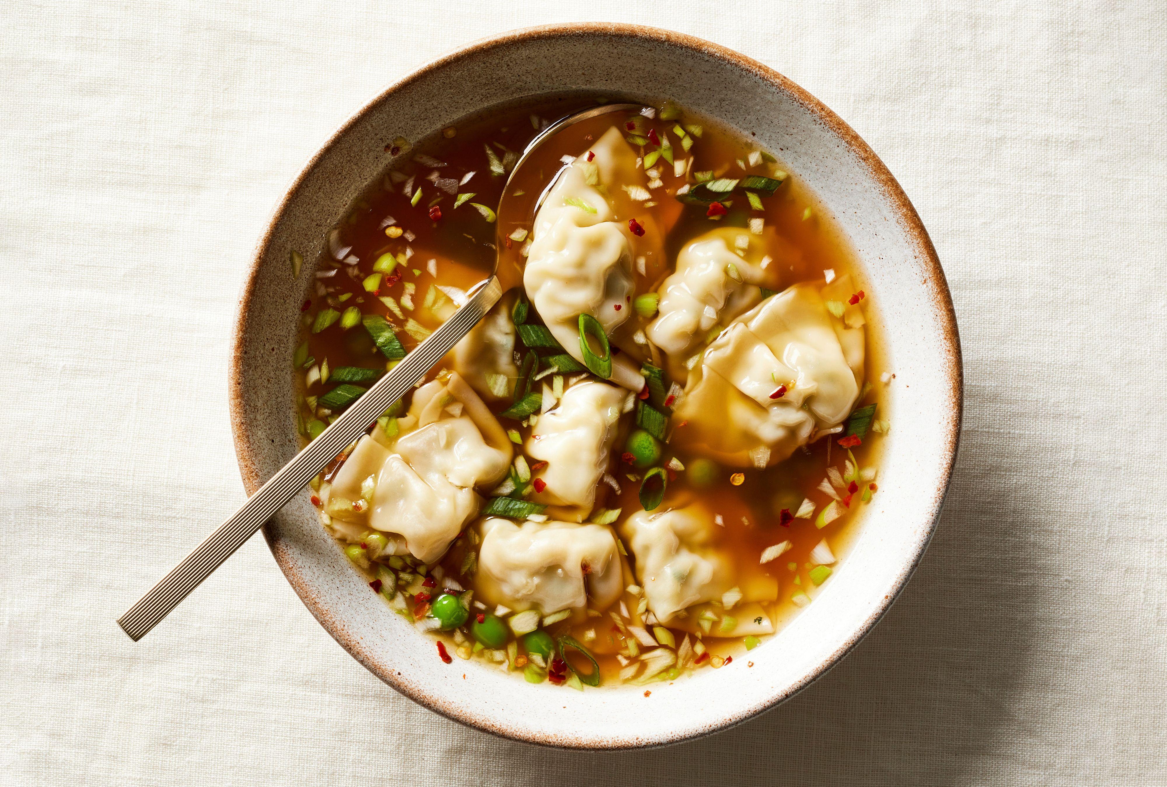 Chicken and Dumplings Soup combines savory chicken broth, green onions, crushed red pepper, green peas, soy sauce, and wontons to create a mouthwatering soup that works well as a side dish or a main course. Since all you need is broth and five additional ingredients to make this tasty dish, you might already have everything you need in the kitchen. Plus, since this soup only takes 15 minutes, you can serve it on lazy days or busy nights. It’s quick, easy to make, and highly satisfying.