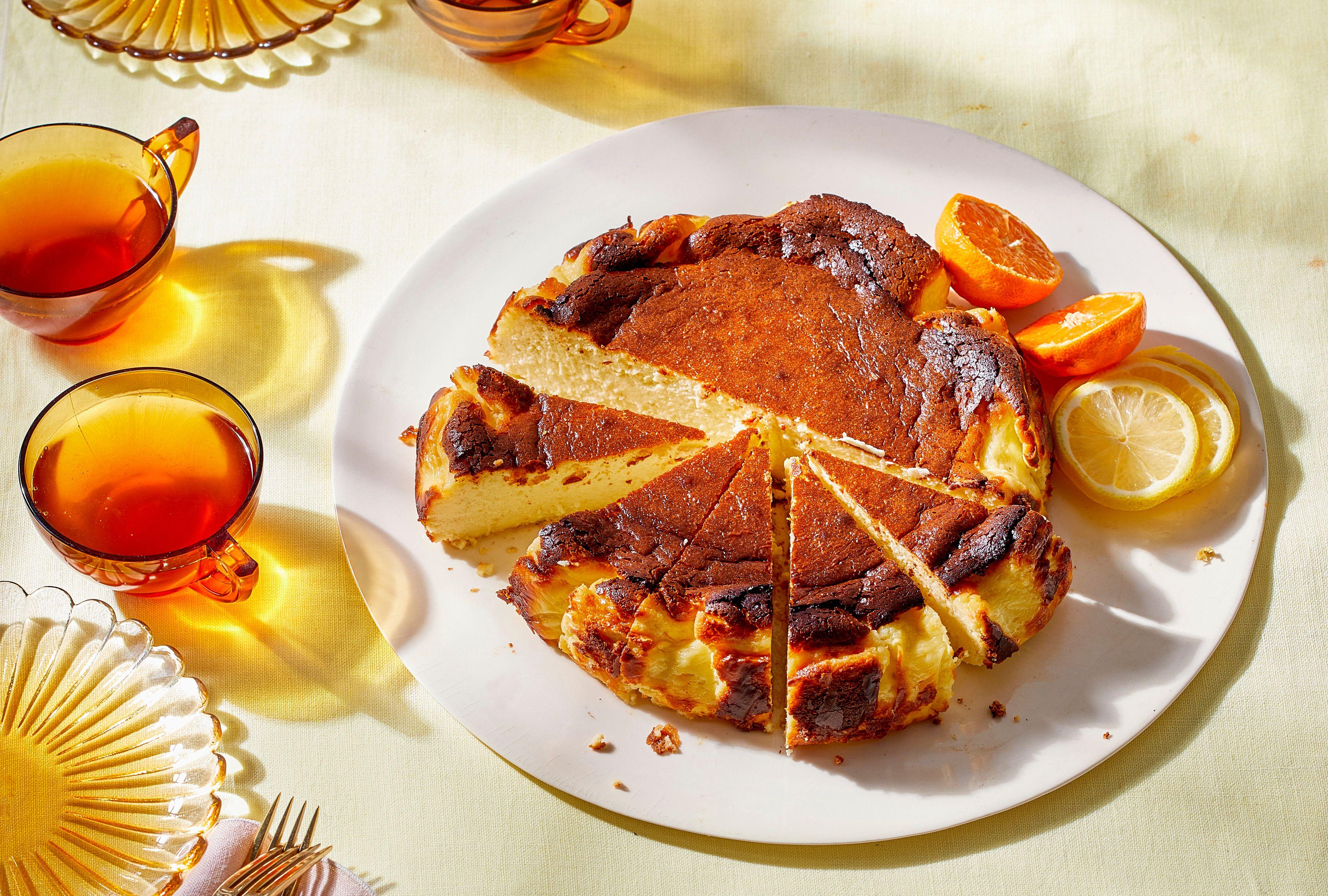 Said to have originated in the 1990s at La Viña, a restaurant in the Basque region of Spain, 'basque' or 'burnt cheesecake' is a crustless cheesecake with a dark caramelized top. It's known for its silky interior and rustic vibe, perfectly contrasting the notes of bold citrus.