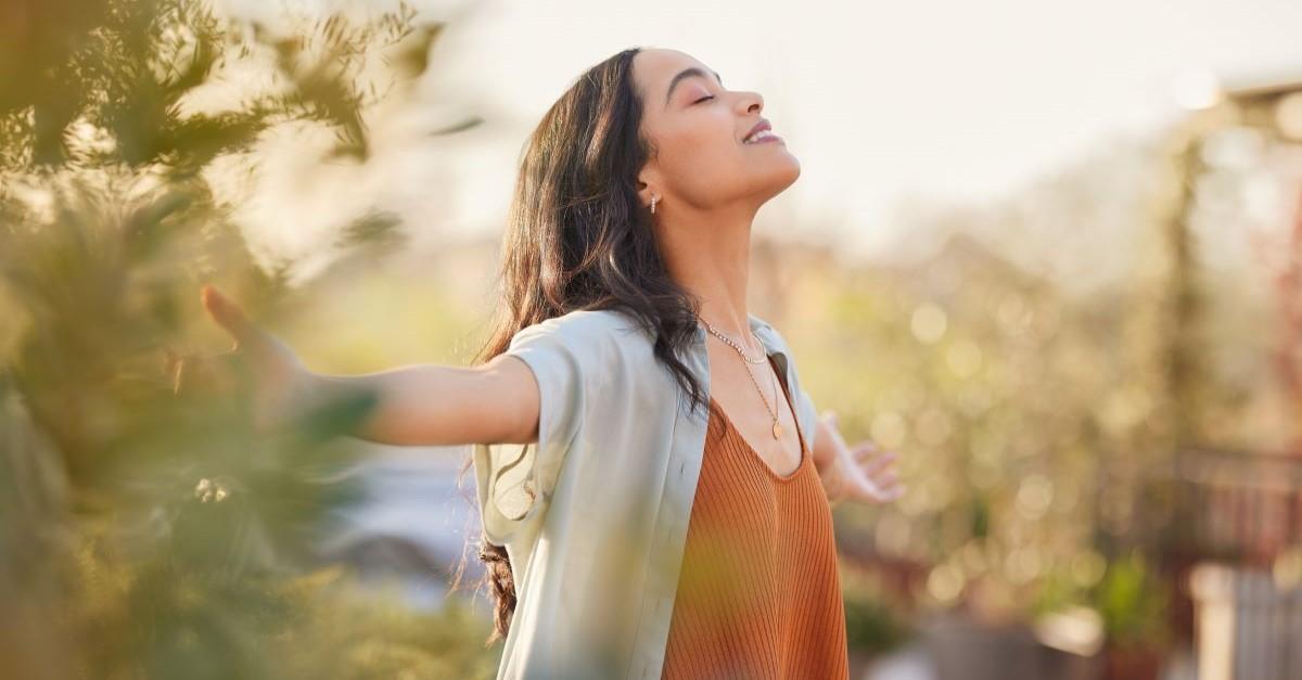 woman relaxing at peace on couch