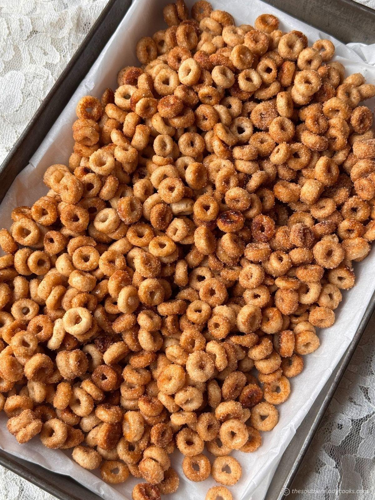 We used Honey Nut Cheerios in this recipe, but you can use any you like. You can also use any generic brand you like; it will still be good! These are delicious, warm right out of the pan!