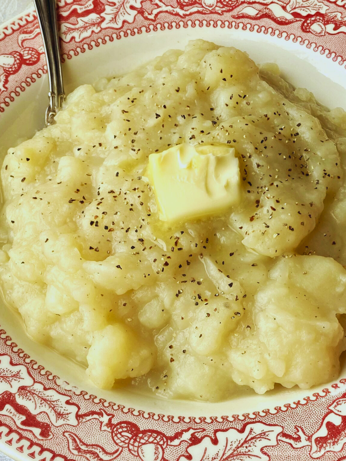 We love this recipe because it goes way back in our family. It’s a recipe our Nannie made and one we still love. One of the best things about this dish is it’s only made with water and butter. It tastes so much like mashed potatoes, but it’s not made the same way.