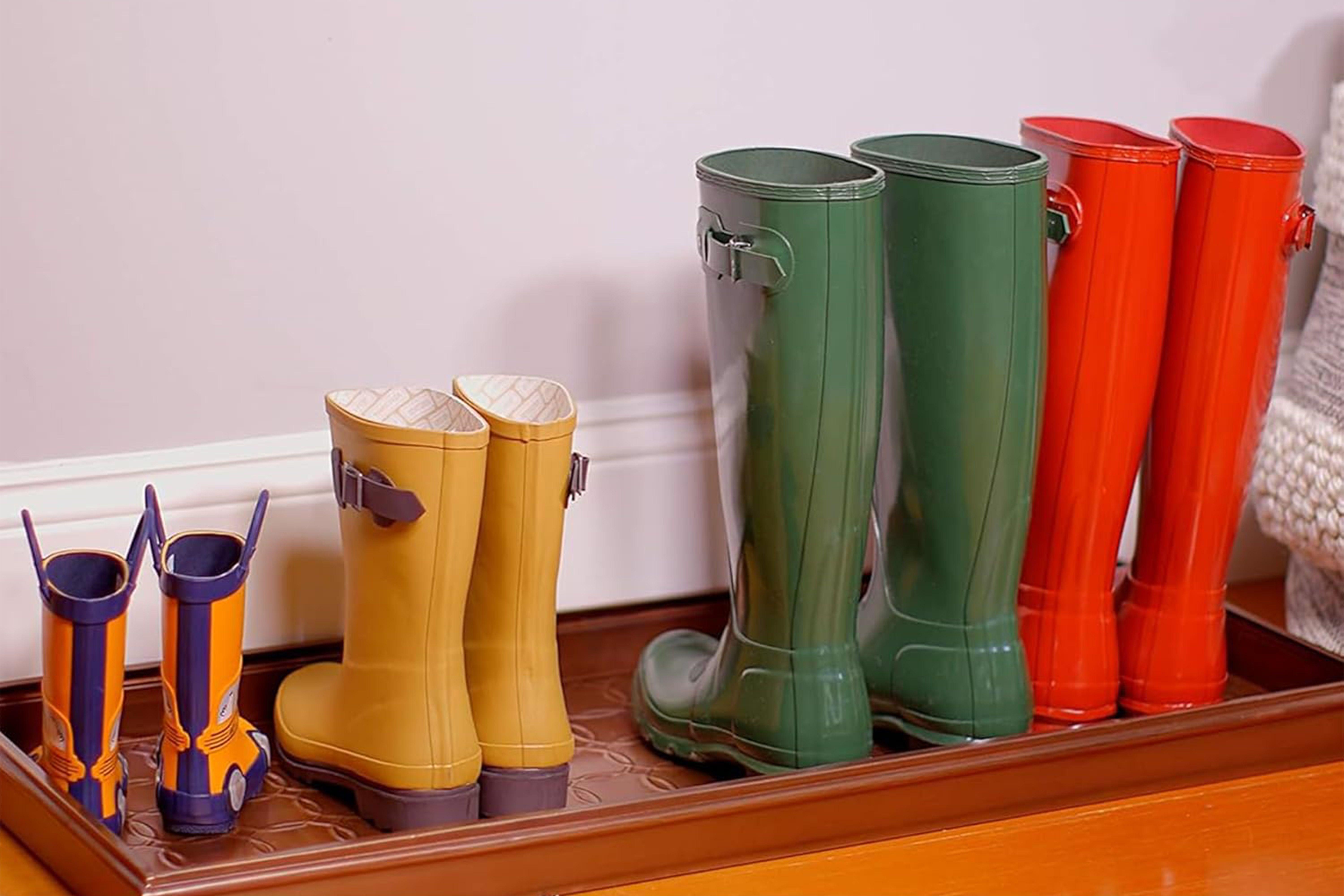Boot trays can be a necessary evil, keeping the elements away from your floors, but that doesn’t mean they have to be an eyesore. Instead of being rubber or plastic, this one is made from galvanized steel, powder-coated to look like copper, and comes in four designs. Thanks to the 2-inch rim, your baseboards are protected from any pesky mud that accumulates on the soles. Meanwhile, the rubber grips on the bottom prevent any sliding around. In addition to holding shoes, this tray can be used for pet trays, plants, and more.