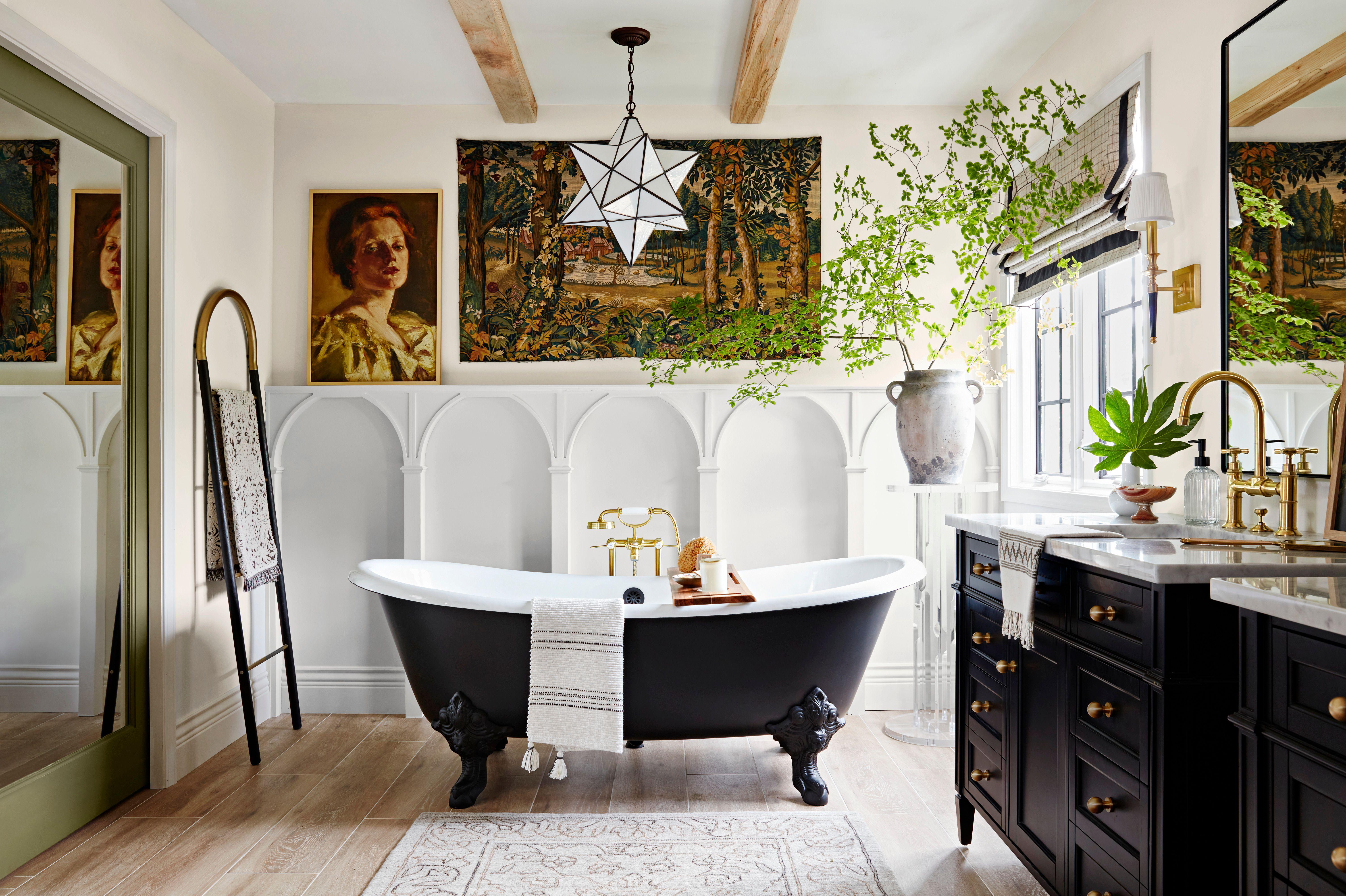 For those looking to dip their toe into a new color trend, Kelly advises painting a vanity, using a new tile in a niche or backsplash, or simply playing with color through accessories and textiles. Luna suggests introducing warmer colors through painted walls and trim, which the designer says can always be repainted if you change your mind.