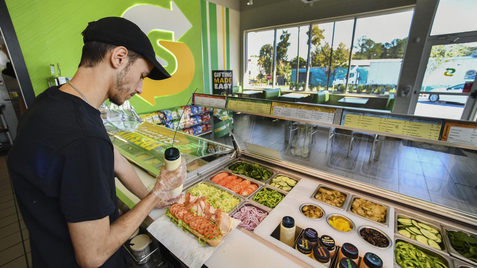 Subway distributes its own ingredients to its stores — but that doesn't mean it actually makes each item in its own facilities. The ingredients are sourced from various suppliers (whose identities Subway does not publicly disclose), then routed through Subway's distribution centers before arriving in stores. And the chain uses a franchise model, so the Subway stores are independently owned and operated but have to adhere to certain corporate standards.