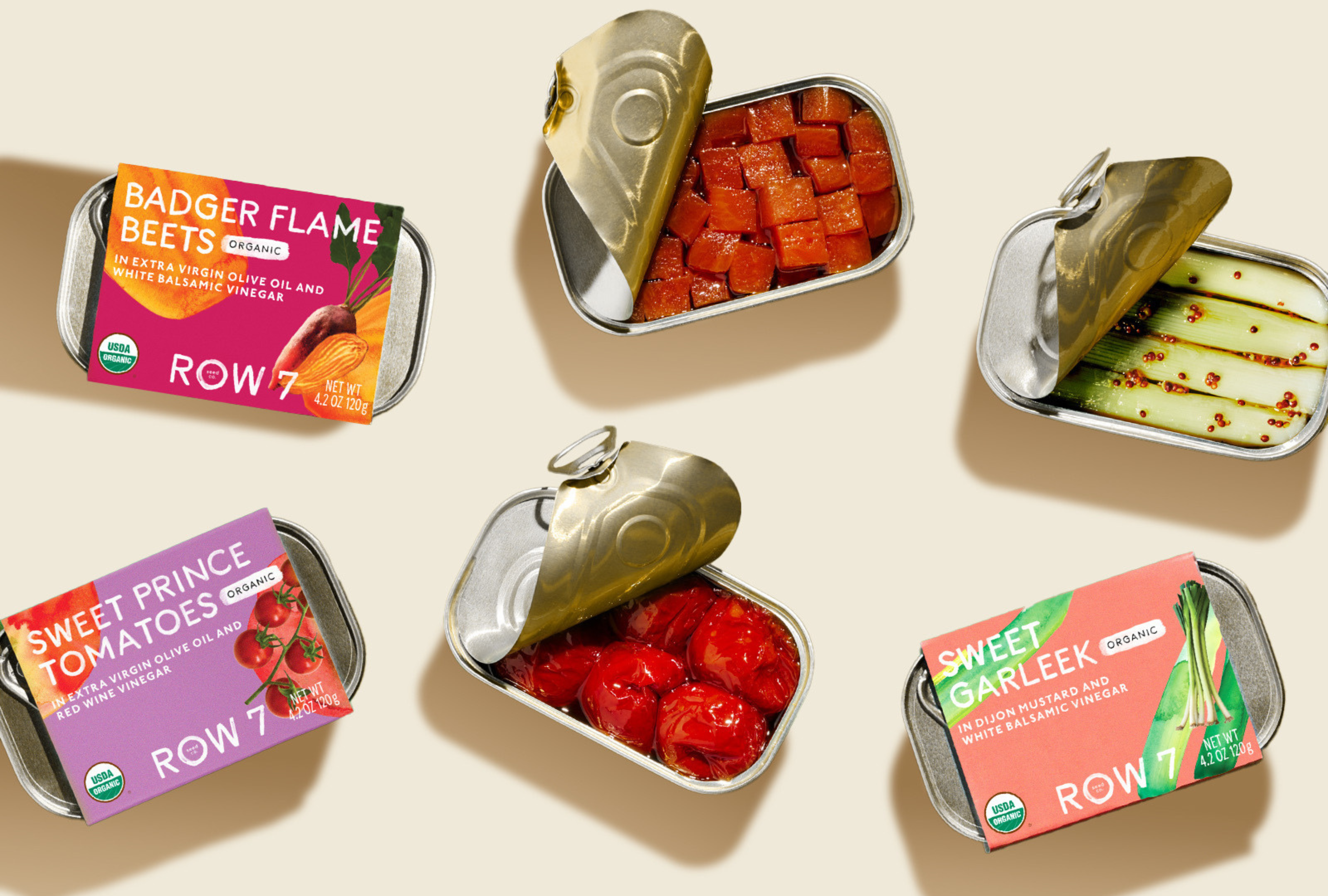 The three new tinned vegetables from Row 7 are currently available from the produce aisle at Whole Foods Market locations in the Northeast, or they can also be purchased nationwide directly from row7seeds.com.