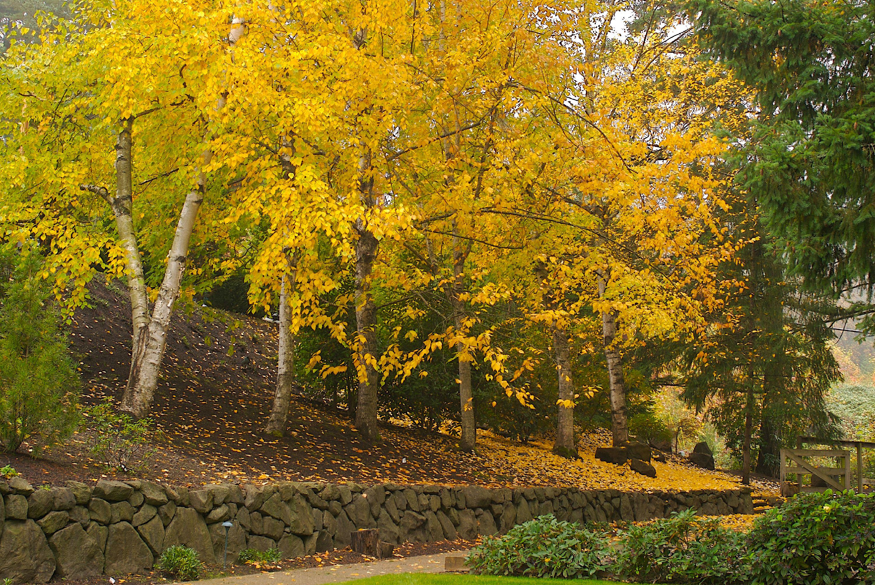 If you love the graceful look of a birch tree, try planting river birches (Betula nigra) instead of paper birches. River birches grow in warmer climates and are less susceptible to bronze birch borers. They still drop leaf litter, but with proper placement, these trees can be viewed from afar without the hassle of cleanup.