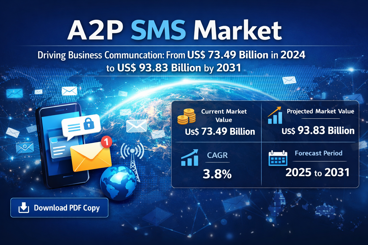 The Application-to-Person (A2P) SMS market has been experiencing significant growth, with its size valued at US$ 73.49 billion in 2024 and projected to reach US$ 93.83 billion by 2031. This growth represents a compound annual growth rate (CAGR) of 3.8% from 2025 to 2031. Several factors contribute to this upward trajectory, including the increasing penetration of mobile devices, the expansion of e-commerce, and advancements in communication technologies.