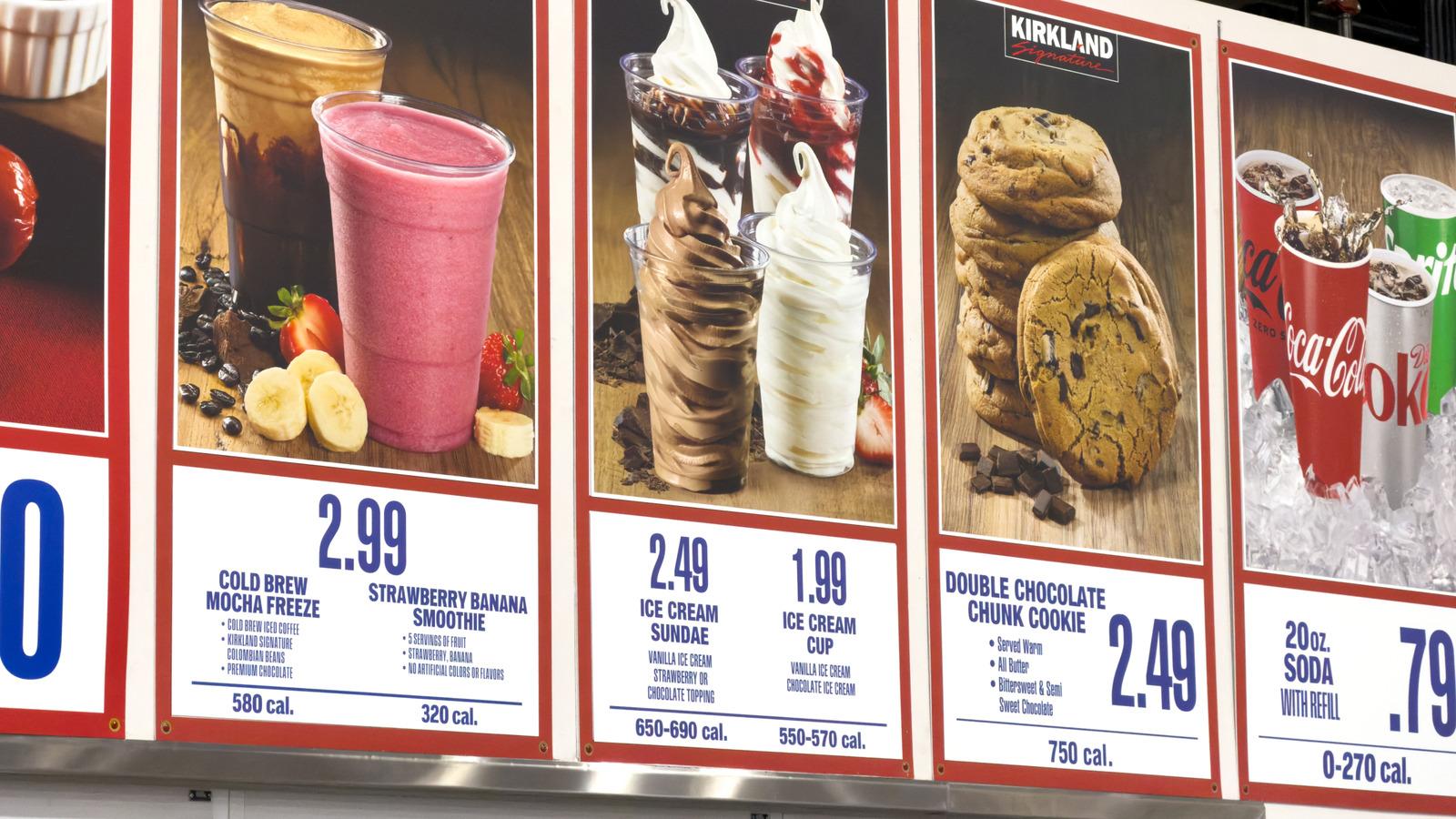 Costco food court menu with double chocolate chunk cookies
