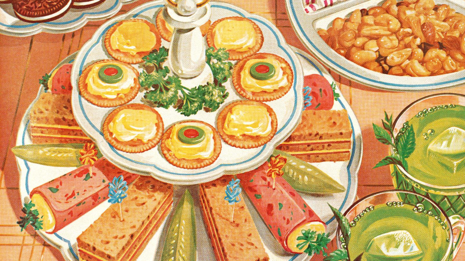Art depiction of retro appetizer spread