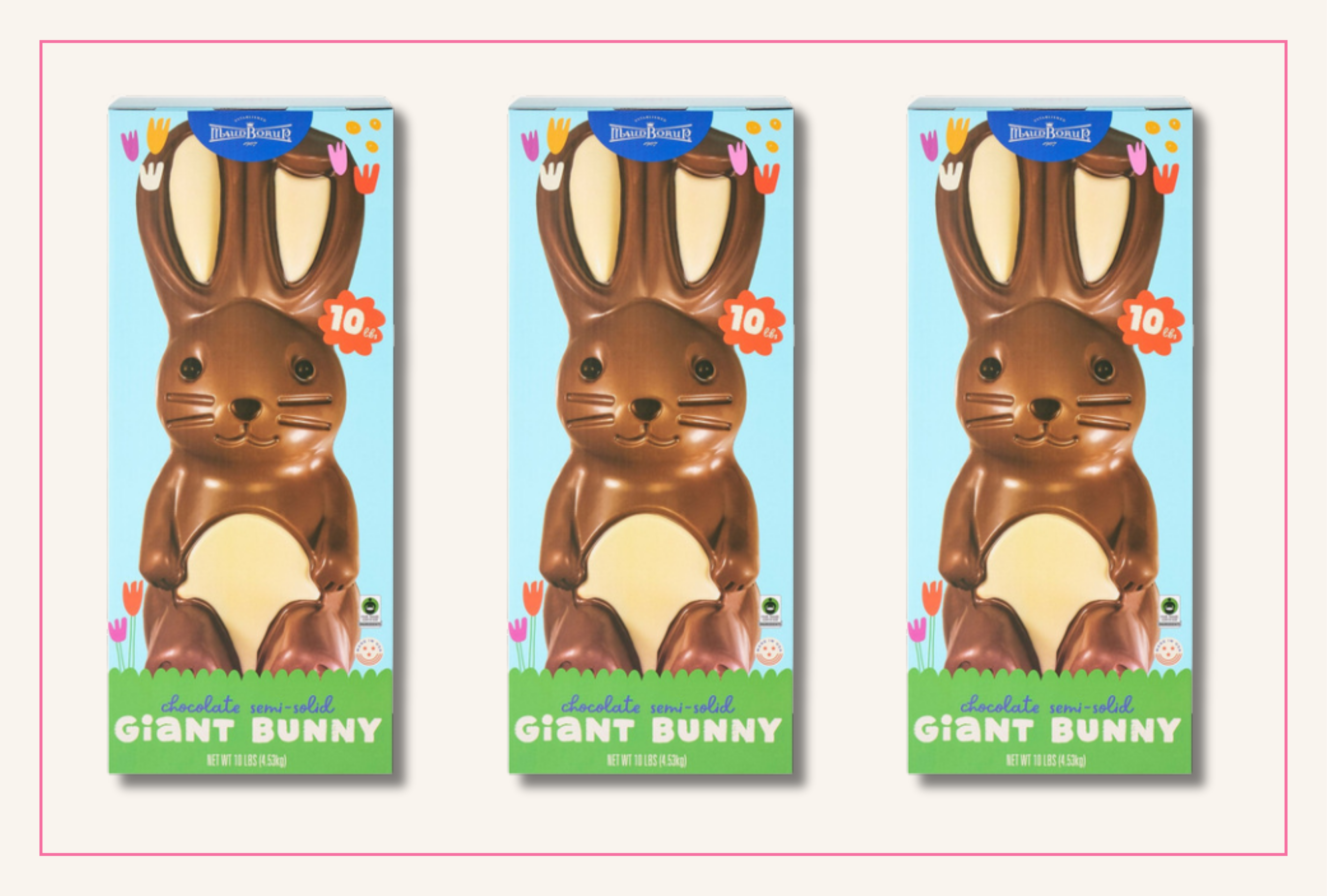 Costco is taking classic Easter candies to a new level this year—and the new bite will put the average chocolate bunny to shame. The next time you stop by your local Costco, you’re bound to find a crowd of customers staring at the retailer’s giant 10-pound chocolate Easter bunny, complete with white chocolate ears and an adorable flower-shaped tail.