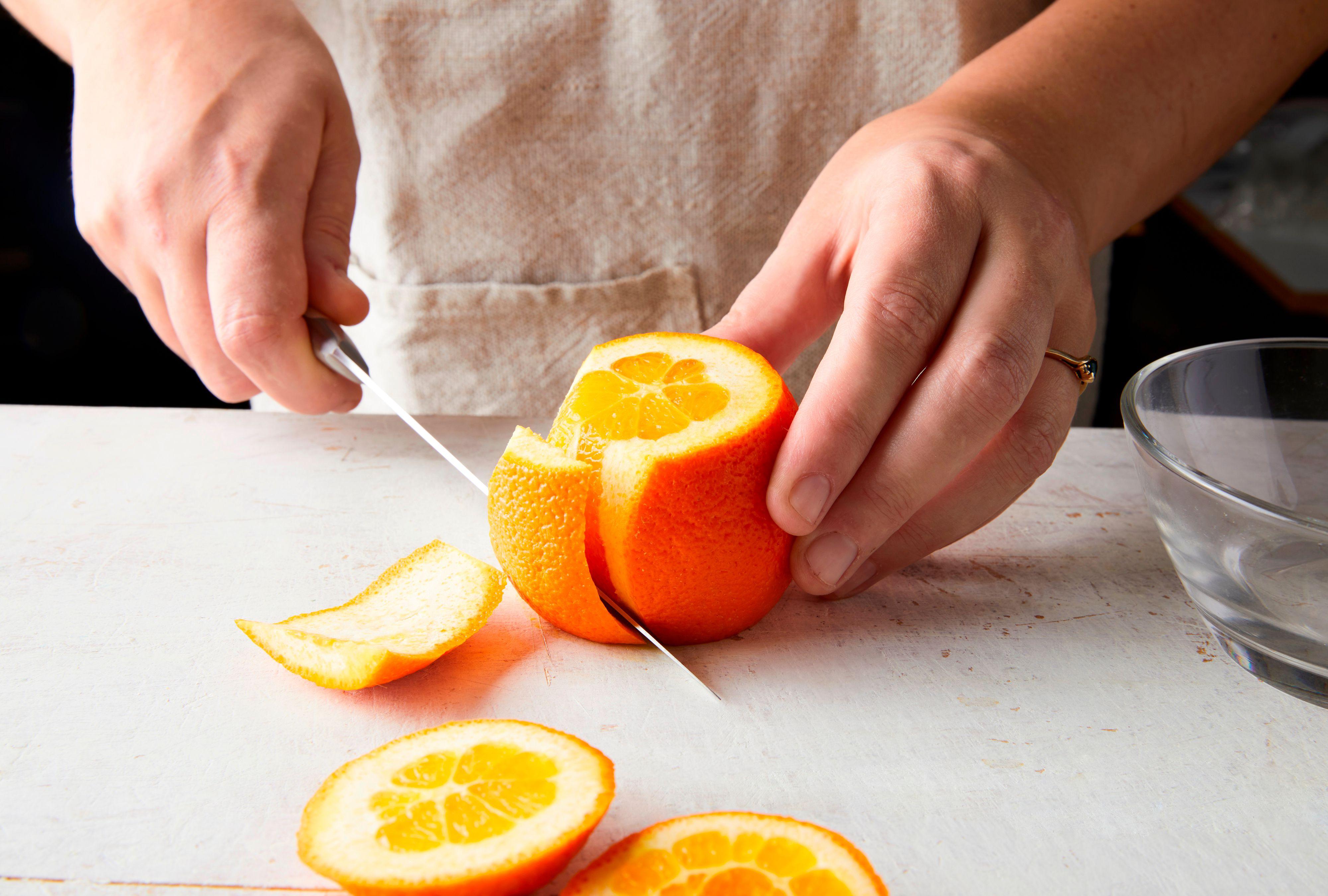 Like most other fruits, you should wash oranges well before cutting them into slices or wedges or removing the peels. When peeling oranges, Brekke advises taking the time to carefully trim away the white pith with a paring knife or peeler, as it’s quite bitter.