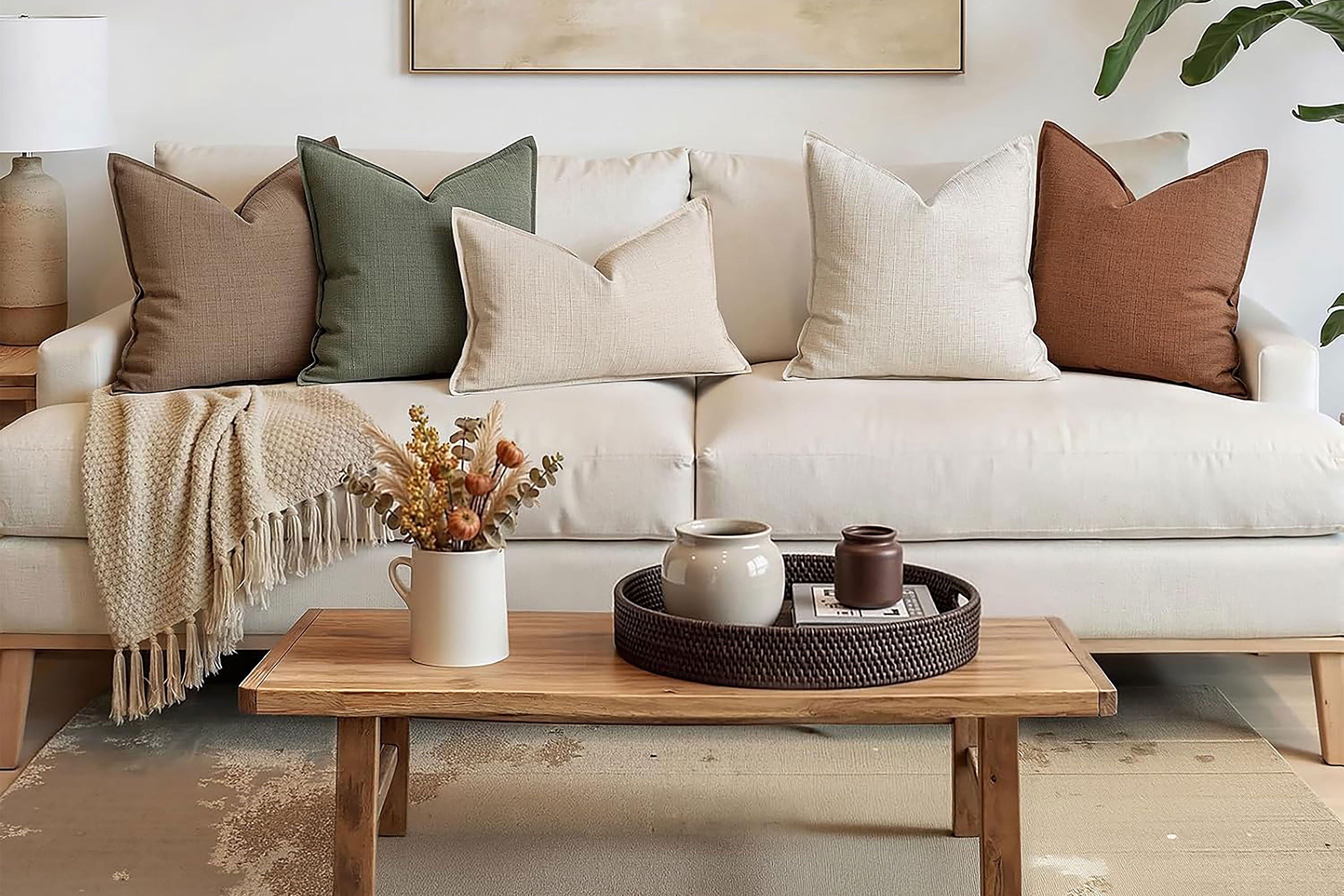 “We love using these to give a sofa that expensive, layered look,” Brown explains. “The texture is substantial, and feels way more custom than it is. They’re the perfect upgrade from the flat, basic pillows that usually come with a couch, which can make a living room feel a bit uninspired.”