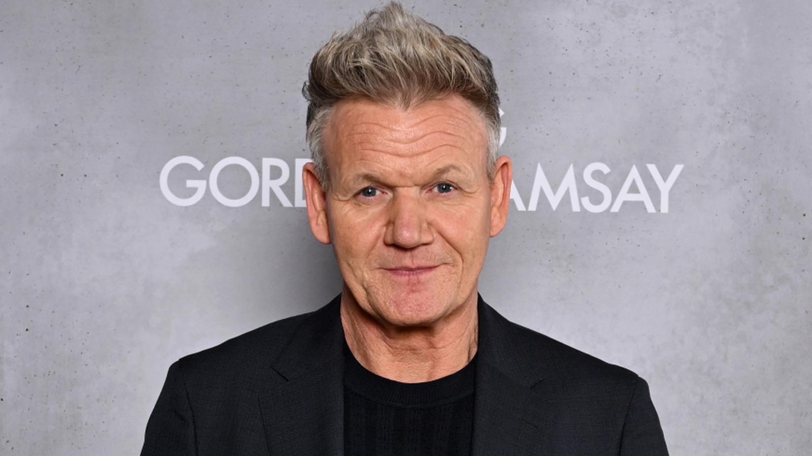 Gordon Ramsay smiling for cameras at a publicity event.