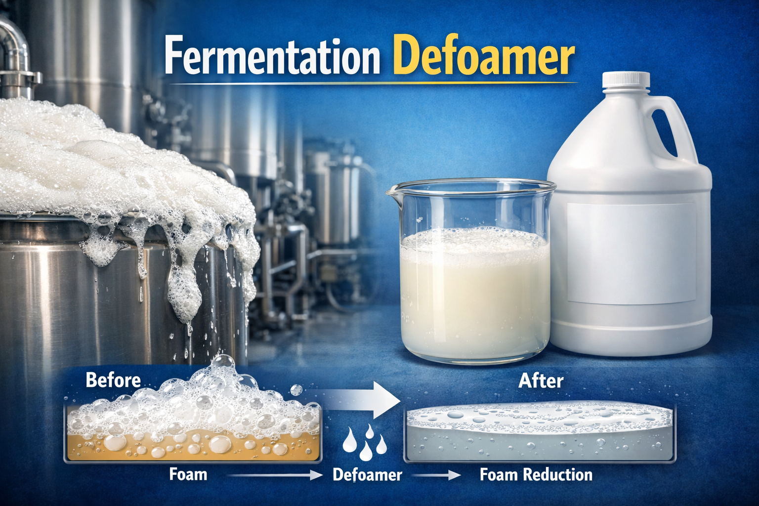 Fermentation defoamers are specialty chemical additives designed to control and suppress foam formation during fermentation processes. They are widely used across food and beverages, pharmaceuticals, biofuels, and industrial biotechnology to ensure stable production conditions, improved oxygen transfer, and higher process efficiency in large scale bioprocessing systems.
