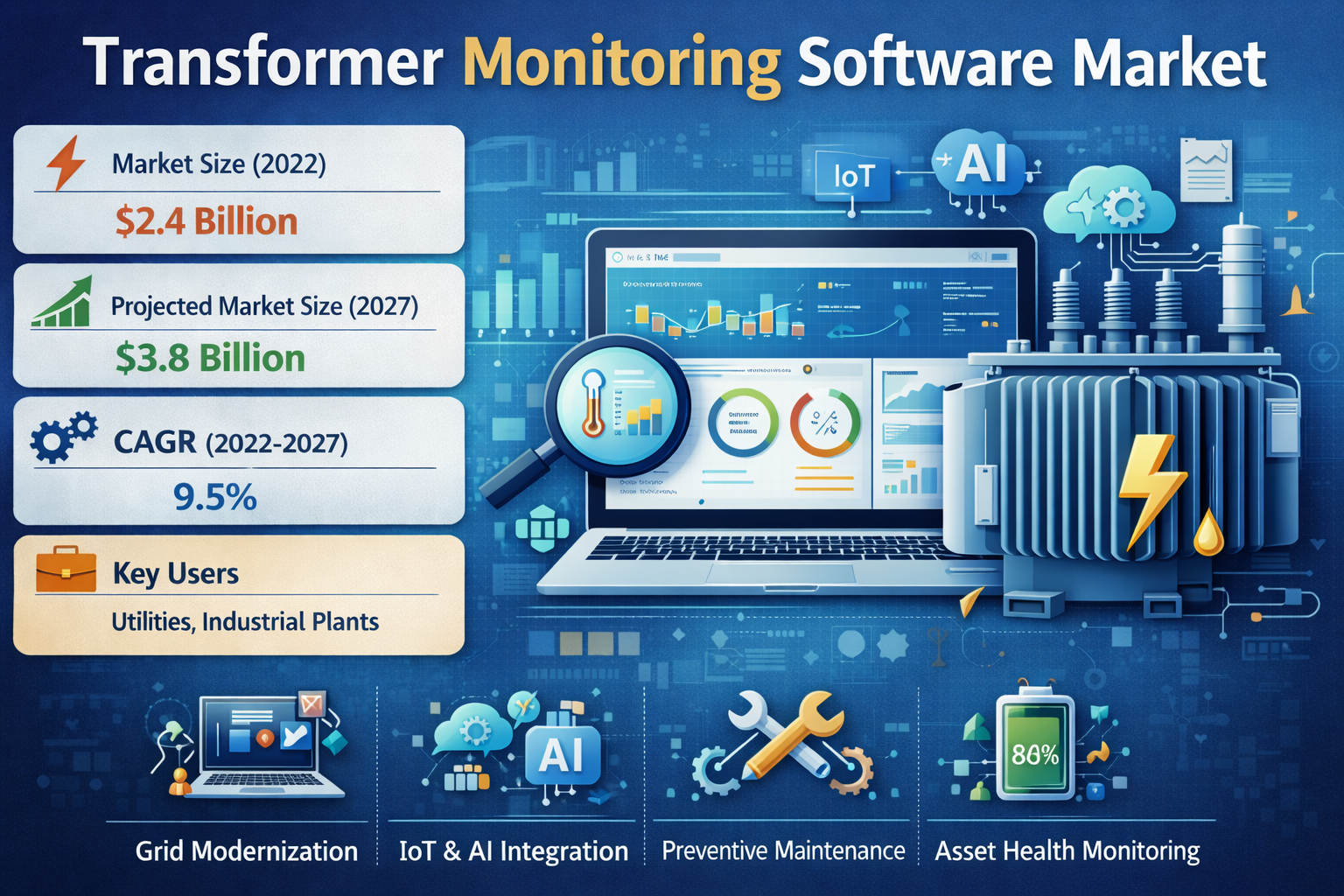 Utilities and industrial operators are increasingly focusing on optimizing asset performance and reducing operational costs. Transformer failures can lead to costly repairs and downtime. Monitoring software enables condition-based maintenance strategies, helping organizations optimize asset utilization and minimize lifecycle costs.