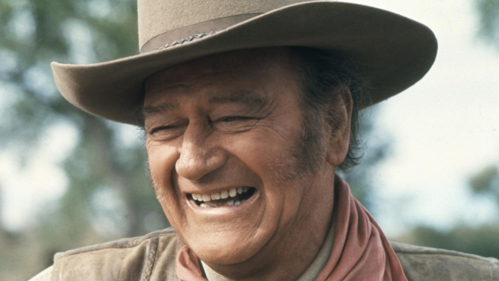 John Wayne smiling in cowboy costume.