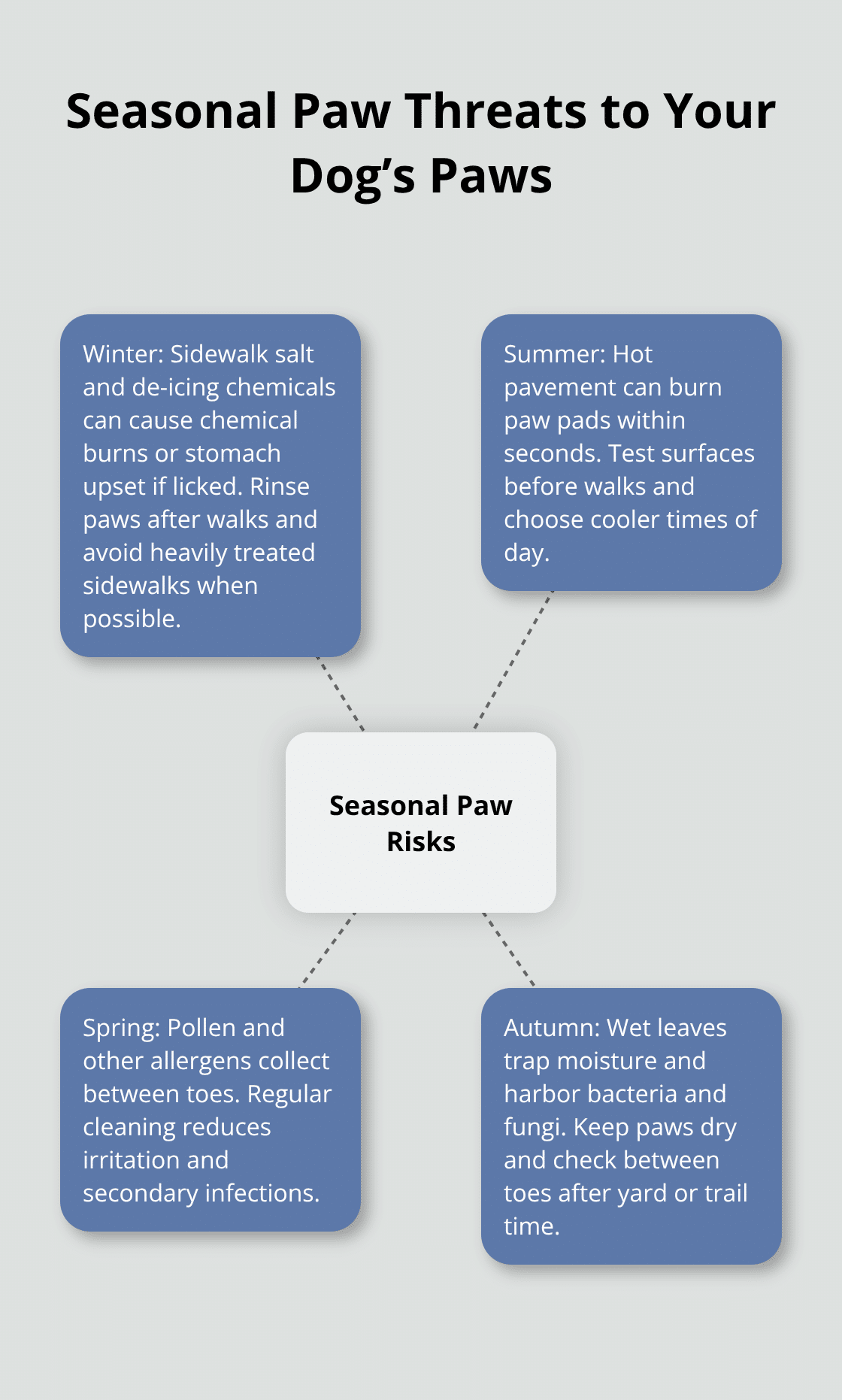 WWW.DOGINGTONPOST.COMHow to Care for Your Dogs Paws at HomeYour dogs paws take a beating every single day. From hot pavement to rough terrain, these hardworking body parts need regular attention to stay healthy.We at DogingtonPost believe proper dog paw care prevents painful problems before they start. Most paw issues can be managed at home with the right knowledge and consistent routine.What Makes Dog Paws So VulnerableDog paw pads serve as natural shock absorbers that provide insulation, traction, and balance while they protect bones and joints from impact. These thick, fatty tissues contain sweat glands that help regulate body temperature and offer grip on various surfaces. The digital pads beneath each toe work with the larger metacarpal pad to distribute weight evenly when dogs move. Between the toes, softer skin collects debris and moisture, which makes this area particularly vulnerable to problems.Early Warning Signs You Must WatchLook for excessive licking, limping, redness, or foul odors that come from your dogs paws. These symptoms often indicate allergies, bacterial infections, or injuries that need immediate attention. Swelling between toes, visible cuts, or reluctance to walk on certain surfaces signals potential issues. Dogs with paw problems frequently shift weight between feet or avoid full pressure on affected paws when they walk.Weather Creates Serious Paw ThreatsWinter brings the greatest threat to paw health through sidewalk salt and chemicals that can cause chemical burns to their paw pads or indigestion if your dog tries to lick it off. Hot pavement during summer months can literally burn paw pads within seconds (there is a simple test called the seven-second test to check whether the pavement is too hot for your pets paws). Spring allergens like pollen accumulate between toes, while autumns wet leaves create perfect conditions for bacteria and fungi that lead to infections.Hidden Dangers in Everyday EnvironmentsSharp objects like glass, metal fragments, and thorns hide in grass and on sidewalks where dogs walk daily. Foxtails and burrs embed themselves between toes and cause painful infections if left untreated. Chemical lawn treatments, pesticides, and cleaning products (especially those used on floors) can irritate sensitive paw pads and cause chemical burns when dogs walk through treated areas.Now that you understand what threatens your dogs paws, you can take proactive steps to protect them through proper daily care routines.How Do You Keep Your Dogs Paws Clean and Healthy DailyClean Paws After Every WalkRinse your dogs paws with lukewarm water immediately after walks to remove salt, chemicals, and debris that collect between toes. Use a shallow basin or sink for small dogs, while larger dogs need a detachable shower head for thorough cleansing. Direct water flow between each toe where dirt and harmful substances accumulate most. Dog wipes work for quick cleanups, but water removes stubborn residue that wipes leave behind. Always dry paws completely with a microfiber towel to prevent bacterial growth in moist areas. Check between toes during this process for embedded objects like foxtails, thorns, or ice balls that form on long-haired breeds.Trim Nails Every Two to Three WeeksOvergrown nails change your dogs gait and put pressure on joints. Cut nails when you hear clicks on hard floors or see them touch the ground when your dog stands normally. Use sharp, dog-specific nail clippers and cut at a 45-degree angle, stay well clear of the pink quick inside each nail. Keep styptic powder ready for minor bleeds (though proper technique prevents this issue). Start nail trims when dogs are young to build tolerance, and use treats during the process to create positive associations. Professional groomers recommend trims every 14-21 days for optimal paw health.Apply Protective Balm WeeklyMoisturize paw pads weekly with pet-safe balms that contain natural oils like coconut oil, shea butter, or beeswax. Human lotions contain ingredients toxic to dogs and should never touch paws. Apply balm after you clean and dry, massage gently into pad surfaces and between toes. Winter conditions require more frequent applications due to salt exposure and dry indoor air. Homemade balms that use equal parts coconut oil and shea butter with beeswax provide effective protection for up to two years when stored properly.Trim Hair Between Paw PadsExcess hair between paw pads traps debris, moisture, and ice that can cause infections and discomfort. Use small scissors or battery-operated trimmers to carefully remove hair that extends beyond the pad level (professional groomers handle this task for fidgety dogs). Trim hair monthly or when you notice matted areas between toes. This simple step prevents snowball formation in winter and reduces allergen accumulation during spring months.These daily maintenance steps form the foundation of healthy paws, but sometimes problems still develop despite your best efforts.What Should You Do When Paw Problems OccurHeal Cracked and Dry Paw Pads FastCracked paw pads need immediate moisture therapy with thick, protective balms that contain shea butter or lanolin. Apply balm three times daily to affected areas and massage gently into cracks to promote faster recovery. Cover treated paws with dog socks for 30 minutes after application to prevent your dog from licking and to improve absorption. Severe cracks that bleed or show signs of infection require veterinary-grade antiseptic washes before you apply balm. Most minor cracks heal within 5-7 days with consistent treatment, while deep fissures may take up to three weeks. Coconut oil mixed with vitamin E provides additional properties that help stubborn cases that resist standard balms.Clean Minor Cuts Properly to Prevent InfectionFlush fresh cuts with sterile saline or clean lukewarm water to remove debris and bacteria from the wound. Apply gentle pressure with clean gauze to stop the flow of blood, then clean the 